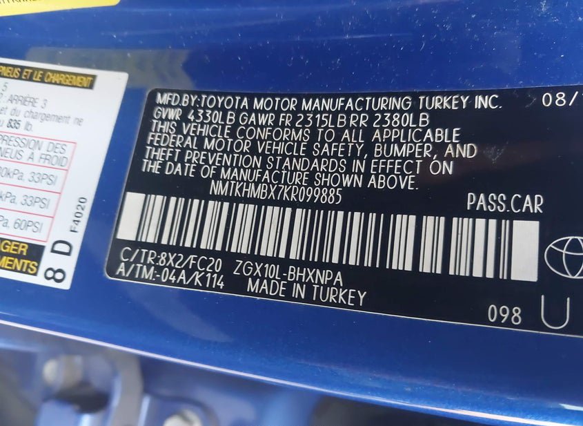 - VIN: NMTKHMBX7KR099885