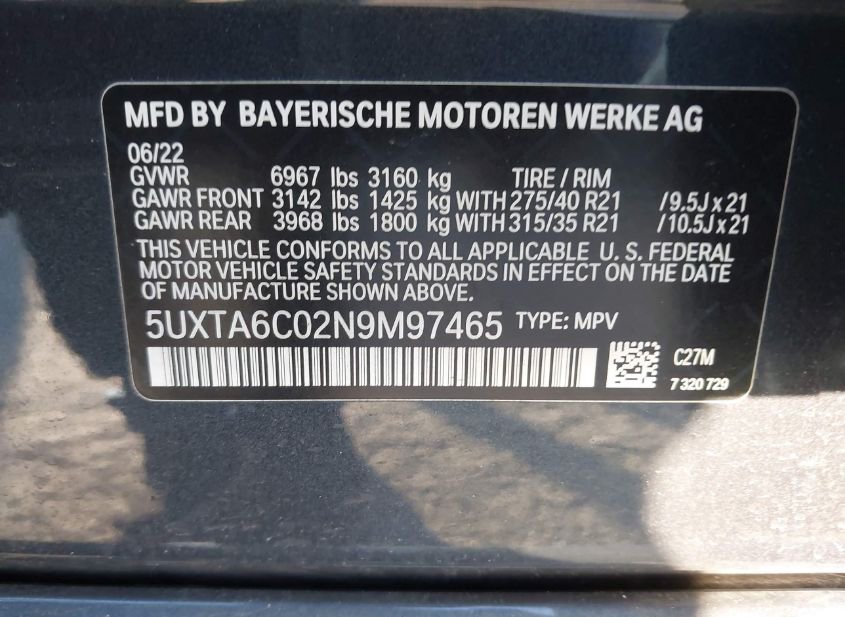 - VIN: 5UXTA6C02N9M97465