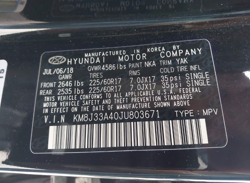 - VIN: KM8J33A40JU803671
