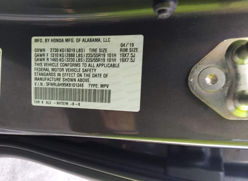 - VIN: 5FNRL6H95KB101348