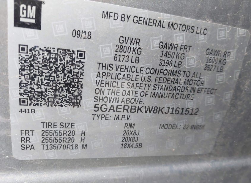 - VIN: 5GAERBKW8KJ161512