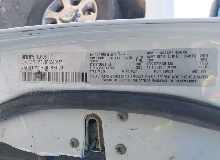 - VIN: 3C6UR5DL4RG320687