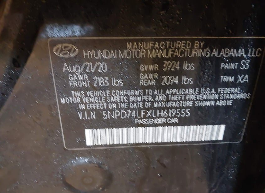 - VIN: 5NPD74LFXLH619555