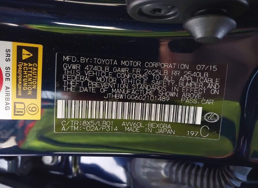 - VIN: JTHBW1GG6G2101489