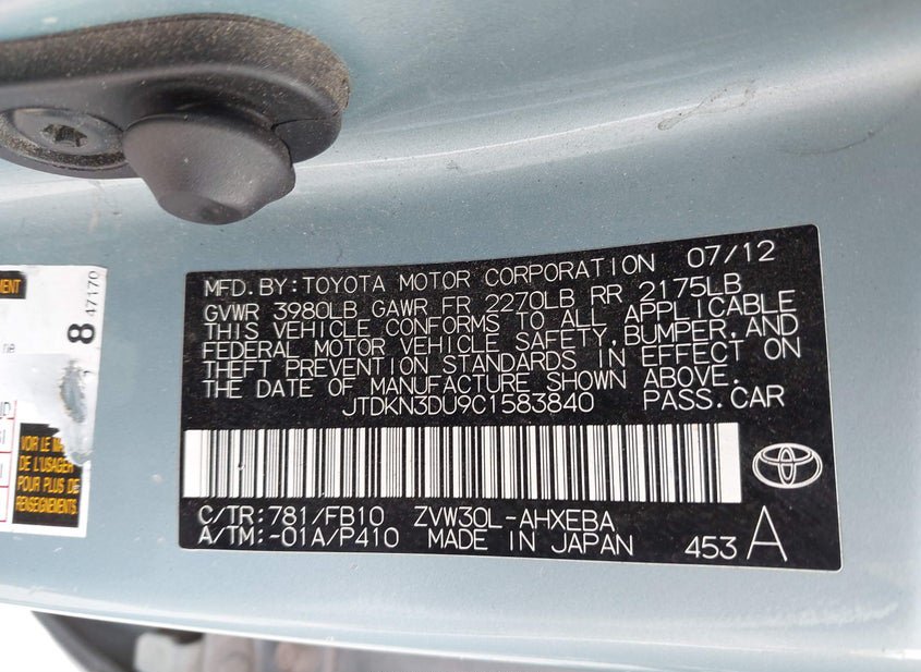 - VIN: JTDKN3DU9C1583840