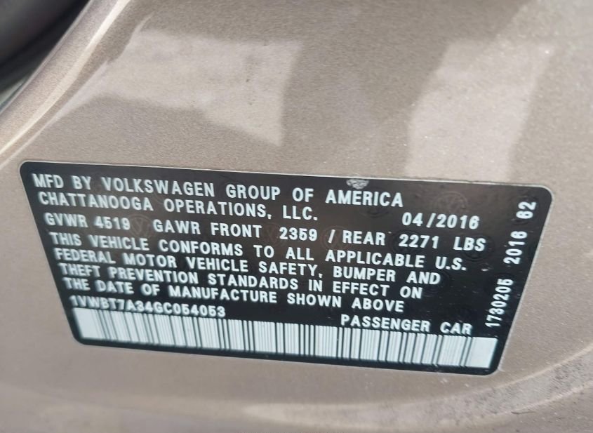 - VIN: 1VWBT7A34GC054053