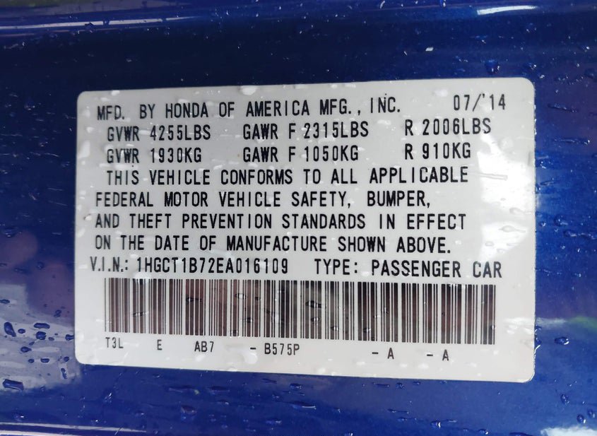 - VIN: 1HGCT1B72EA016109