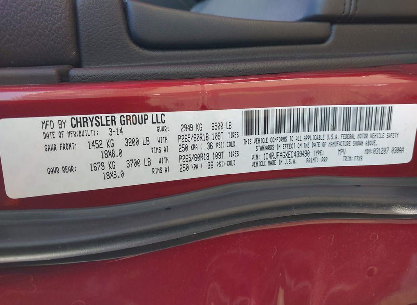- VIN: 1C4RJFAGXEC439490