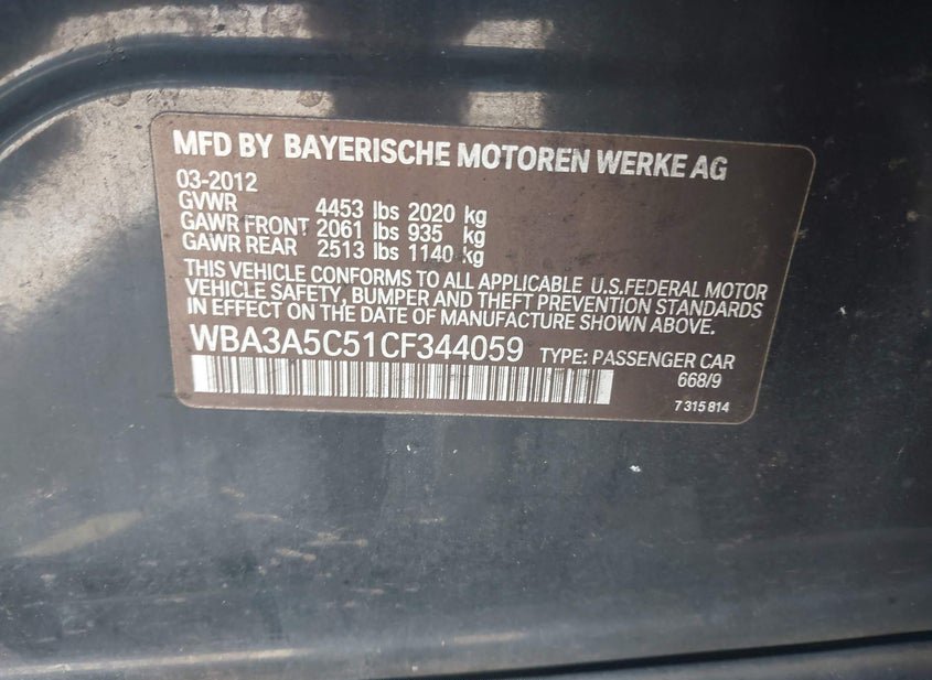 - VIN: WBA3A5C51CF344059