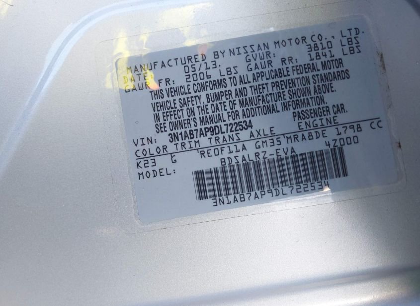- VIN: 3N1AB7AP9DL722534
