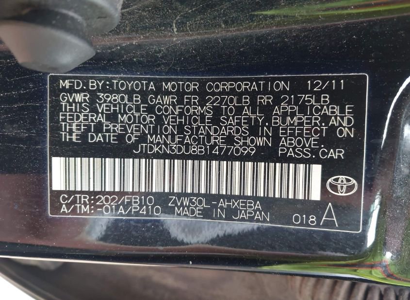 - VIN: JTDKN3DU8B1477099