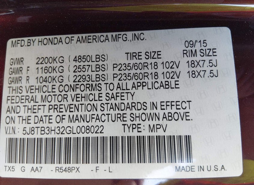 - VIN: 5J8TB3H32GL008022