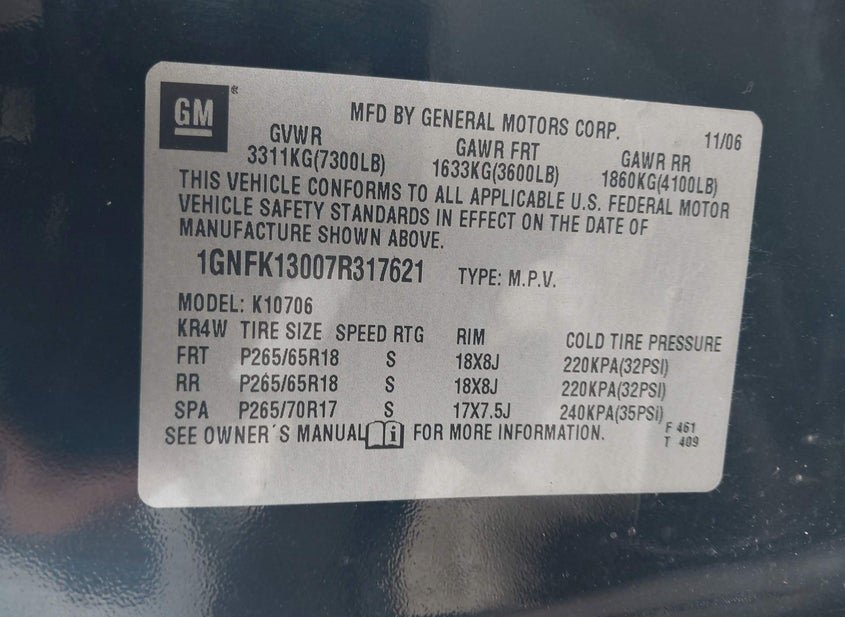 - VIN: 1GNFK13007R317621