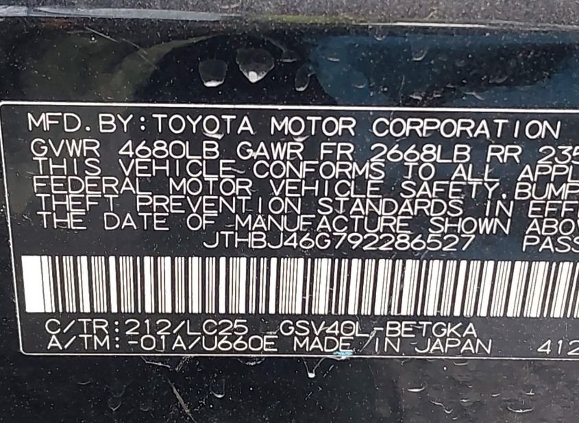 - VIN: JTHBJ46G792286527