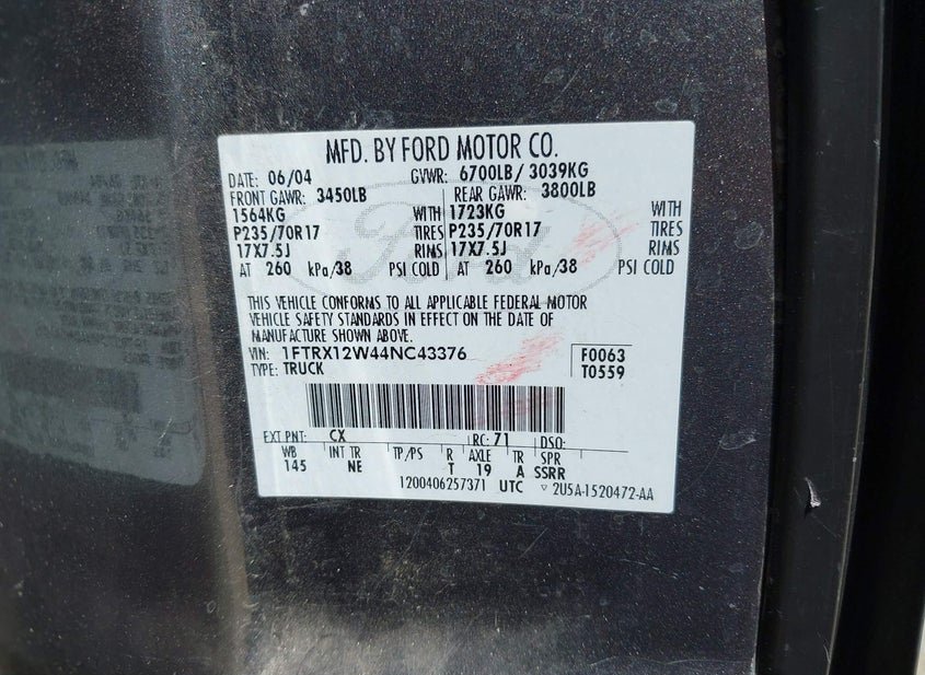 - VIN: 1FTRX12W44NC43376