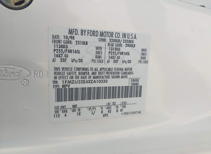 - VIN: 1FMZU32E4XZA10330