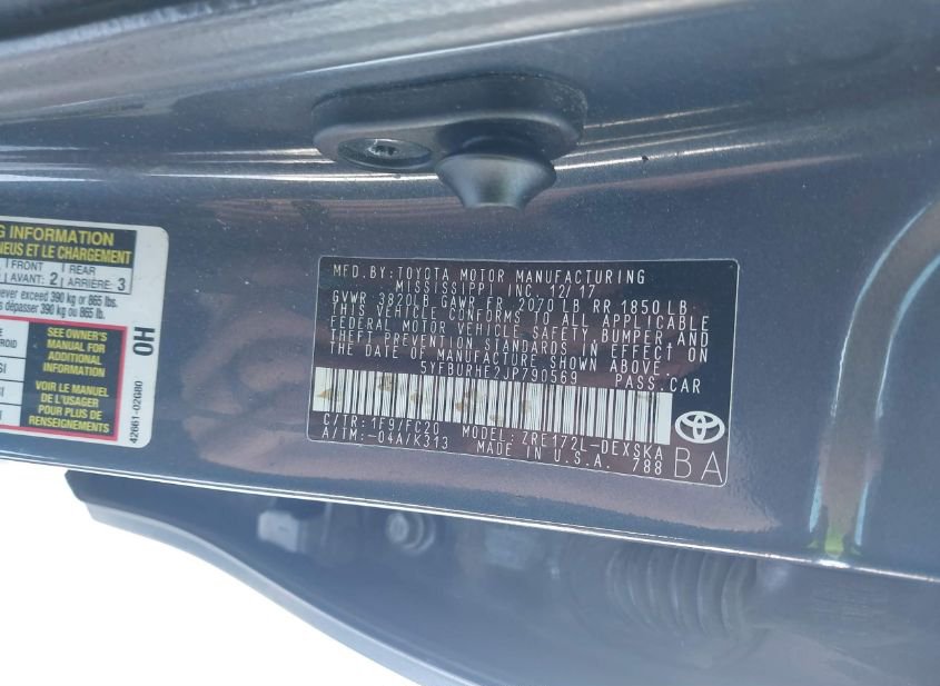 - VIN: 5YFBURHE2JP790569