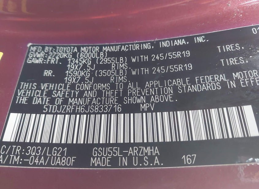- VIN: 5TDJZRFH6JS833716