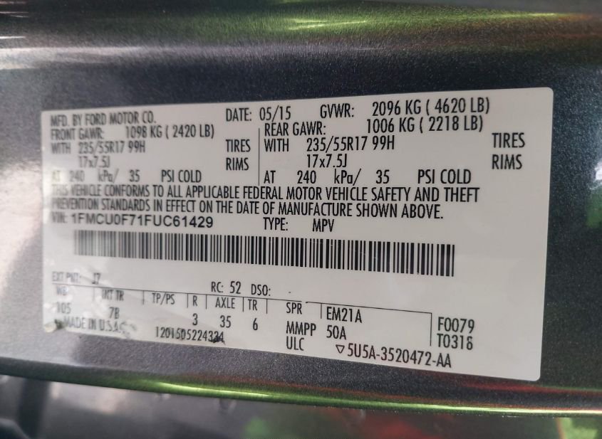 - VIN: 1FMCU0F71FUC61429