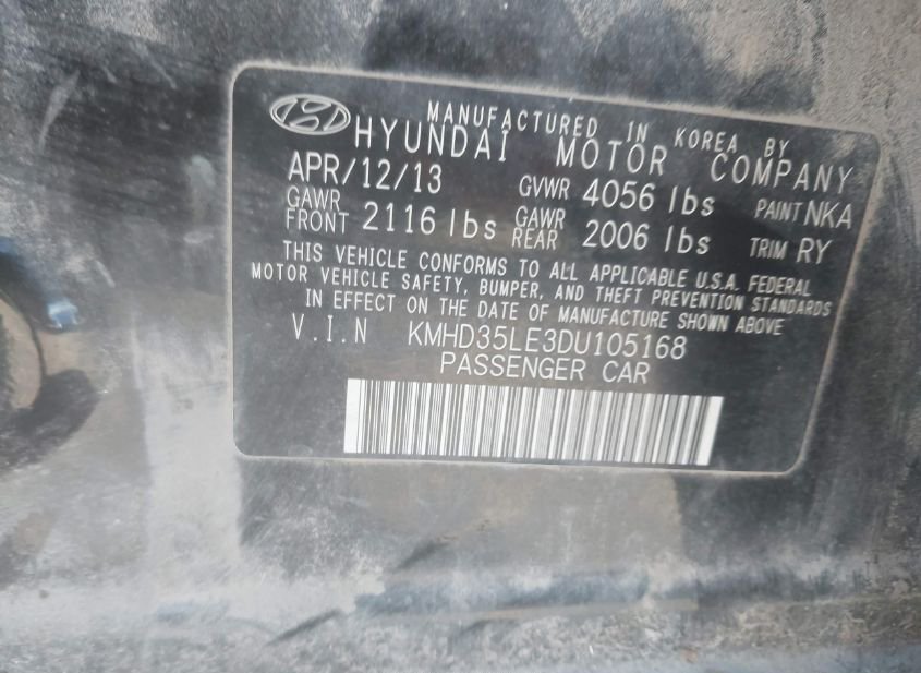 - VIN: KMHD35LE3DU105168