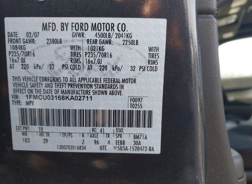 - VIN: 1FMCU03168KA02711