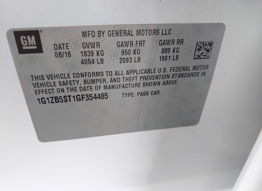 - VIN: 1G1ZB5ST1GF354485
