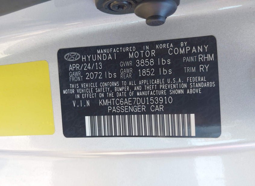 - VIN: KMHTC6AE7DU153910