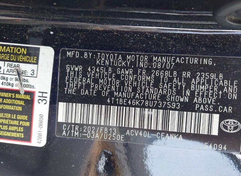 - VIN: 4T1BE46K78U737593