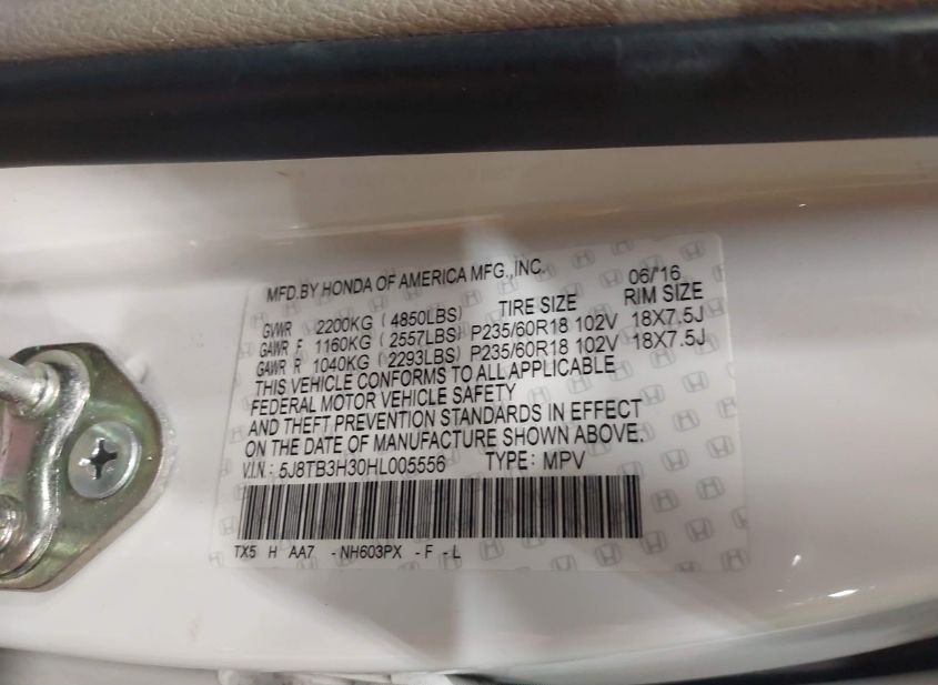 - VIN: 5J8TB3H30HL005556