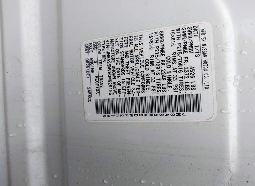- VIN: JN8AS5MV5DW629195