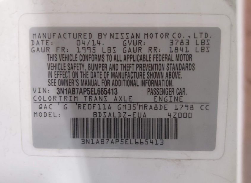 - VIN: 3N1AB7AP5EL665413
