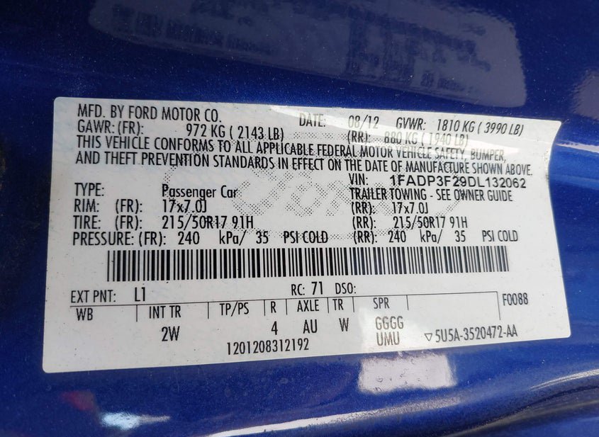 - VIN: 1FADP3F29DL132062
