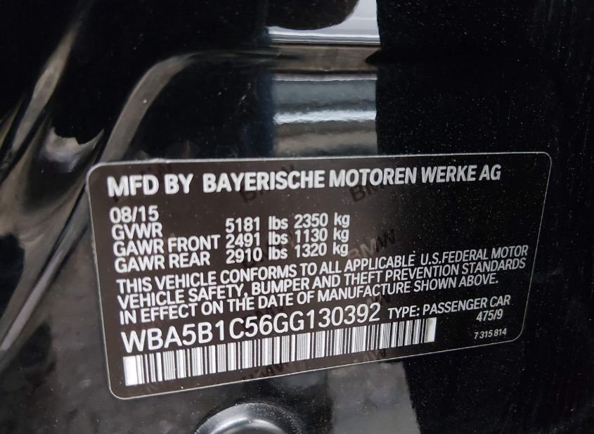 - VIN: WBA5B1C56GG130392
