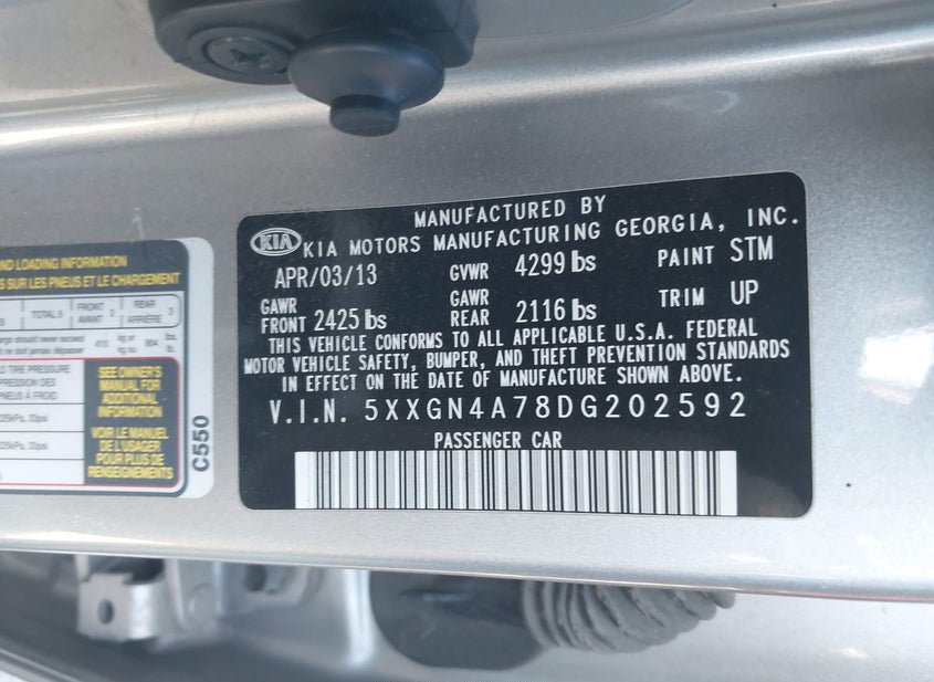 - VIN: 5XXGN4A78DG202592