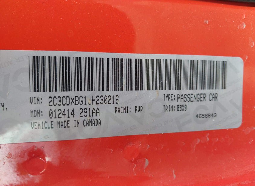 - VIN: 2C3CDXBG1JH230216