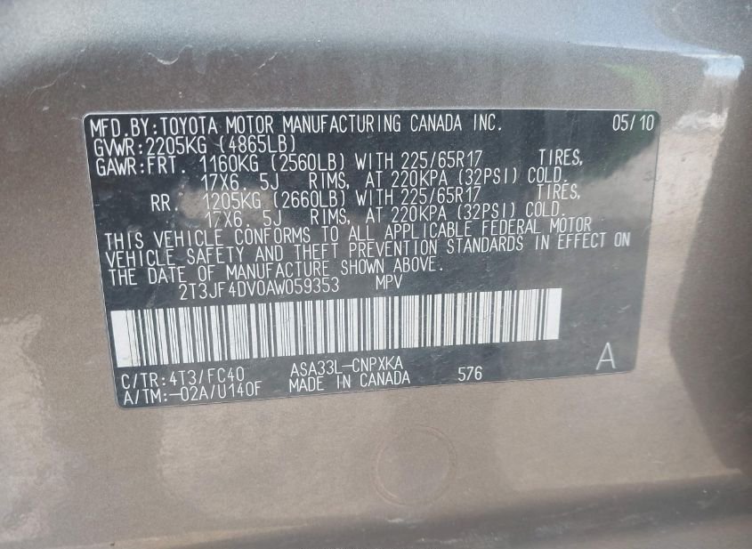 - VIN: 2T3JF4DV0AW059353