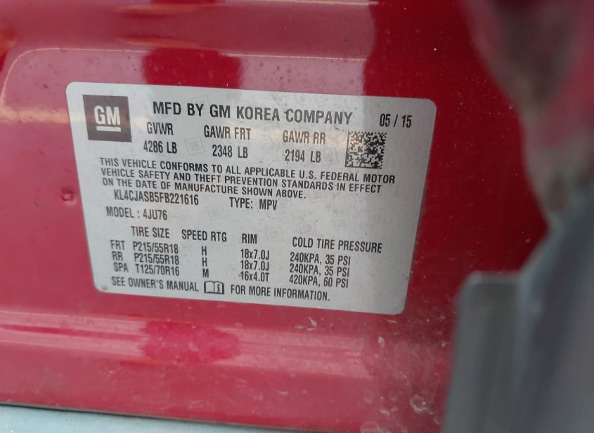 - VIN: KL4CJASB5FB221616