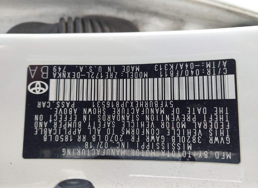 - VIN: 5YFBURHEXJP816531