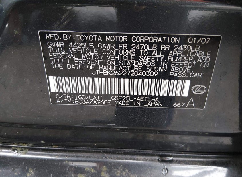 - Название лота: 2007 LEXUS IS 250