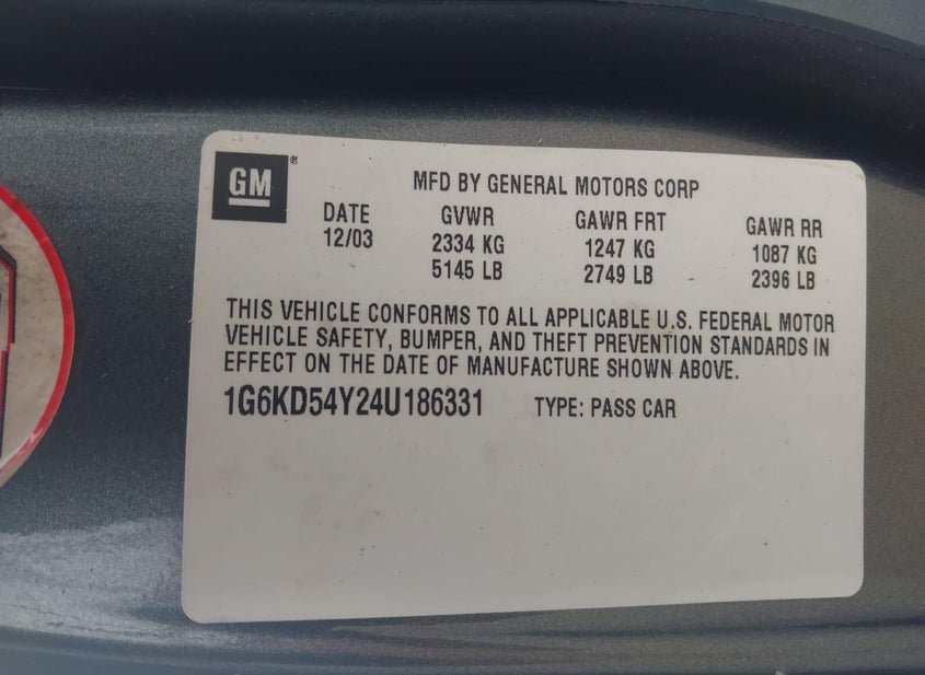 - VIN: 1G6KD54Y24U186331