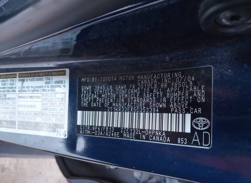 - VIN: 2T1KR32EX5C352394