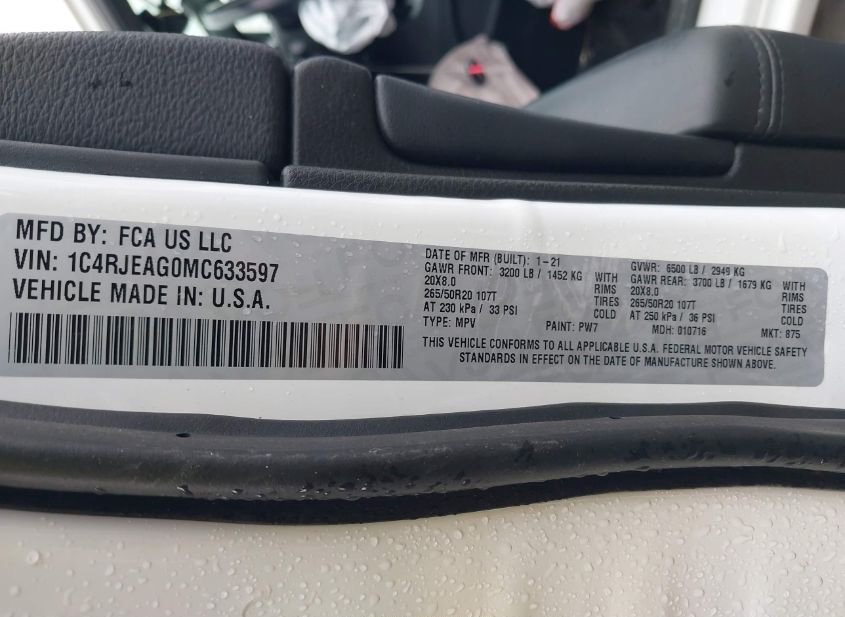 - VIN: 1C4RJEAG0MC633597