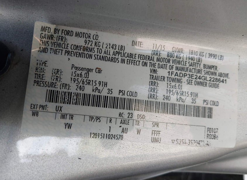 - VIN: 1FADP3E24GL228641