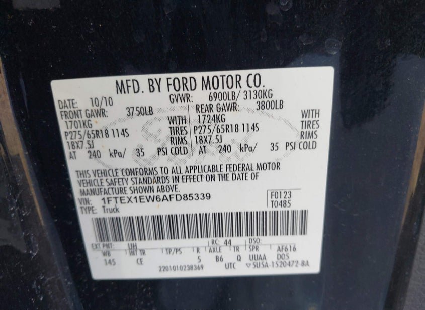 - VIN: 1FTEX1EW6AFD85339