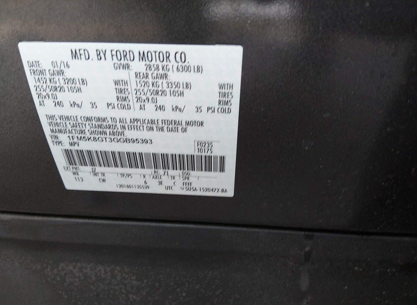 - VIN: 1FM5K8GT3GGB95393