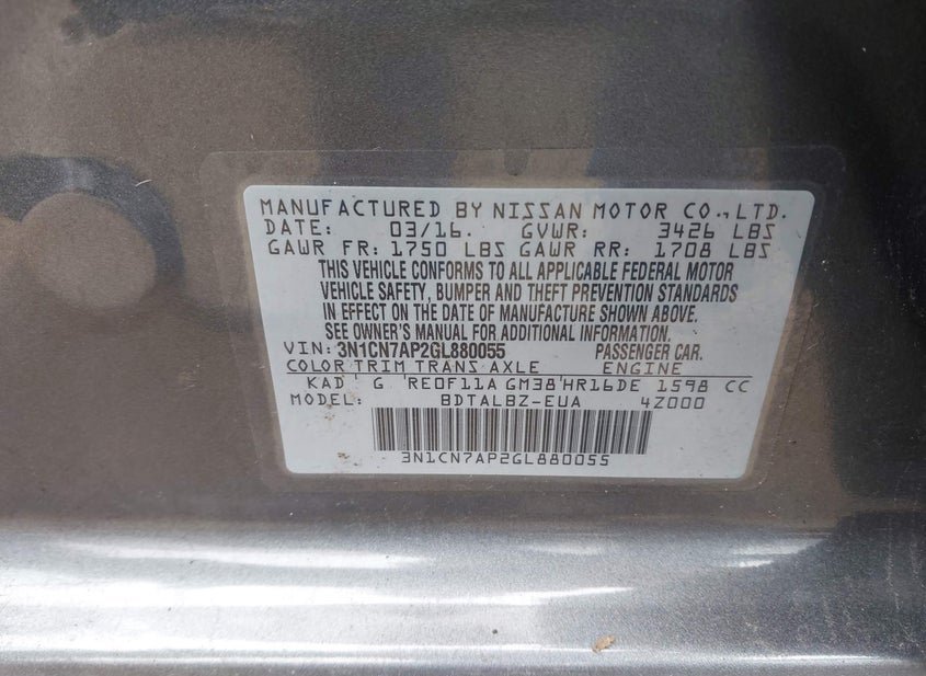 - VIN: 3N1CN7AP2GL880055