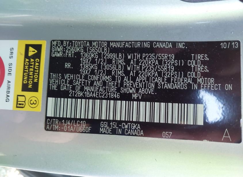 - VIN: 2T2BK1BA4EC231846