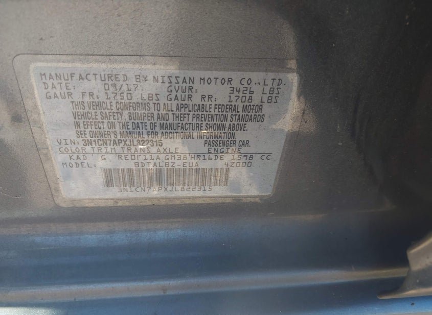 - VIN: 3N1CN7APXJL822315