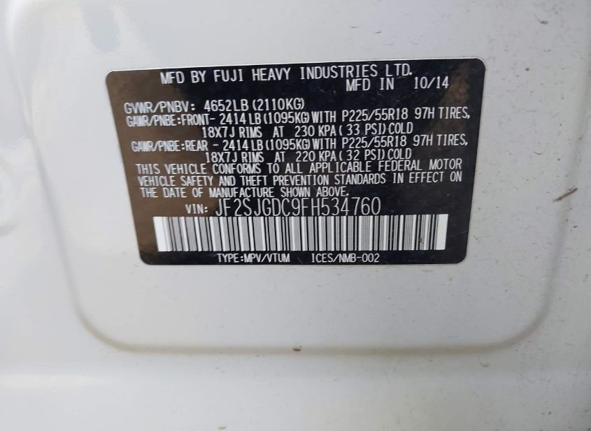 - VIN: JF2SJGDC9FH534760