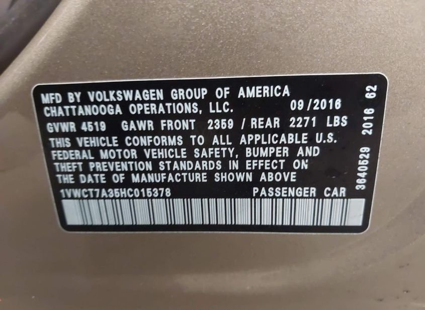- VIN: 1VWCT7A35HC015378